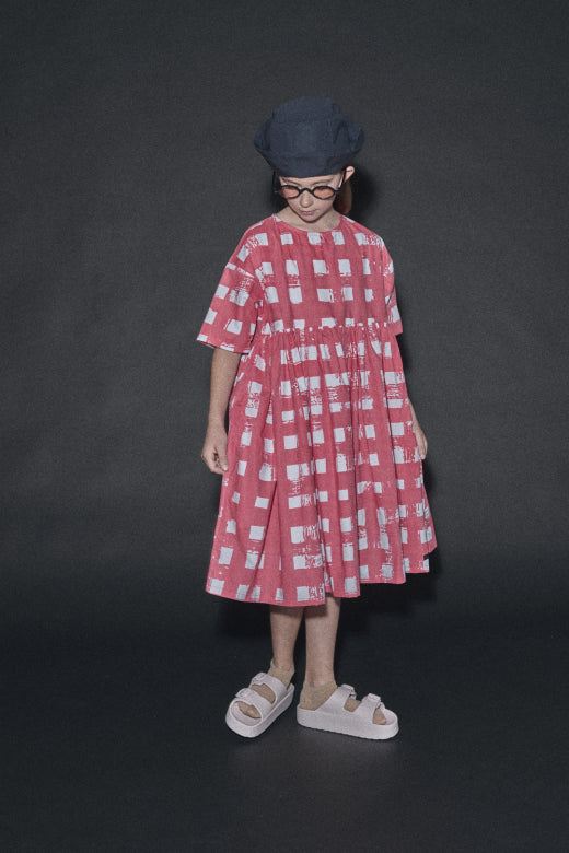 Atlantic Dress in Coral Plaid Print color for kids and adults proudly made in Portugal from Little Creative Factory